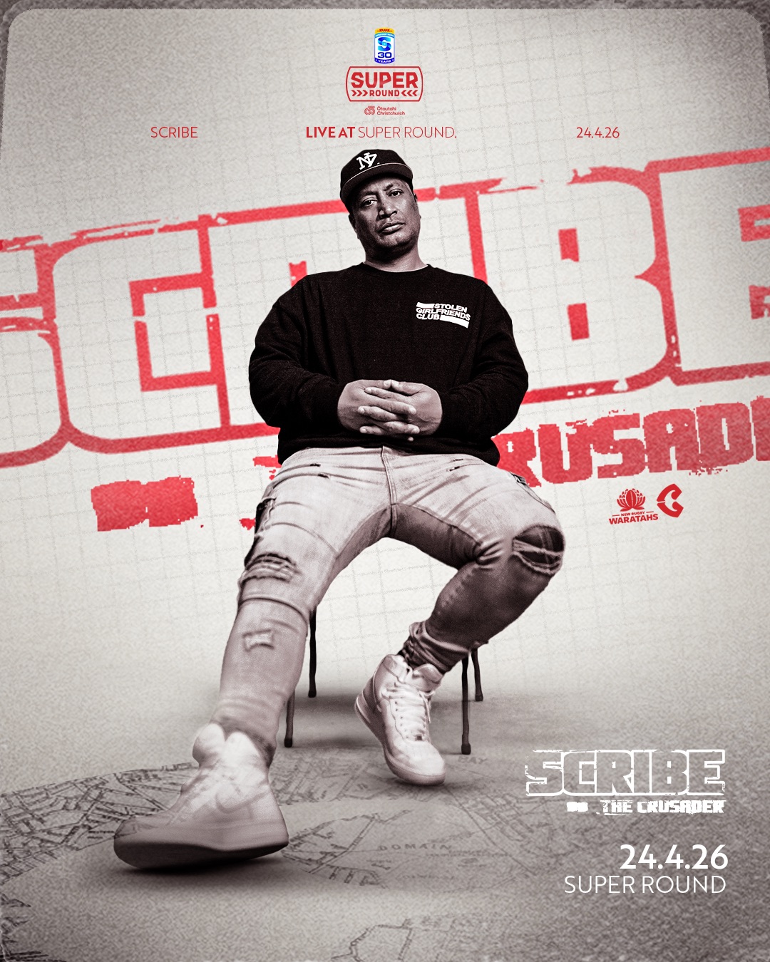 When the Crusaders run out for Friday night’s sold‑out clash against the NSW Waratahs at One New Zealand Stadium, our fans will be treated to a special half-time performance from hometown legend Scribe.