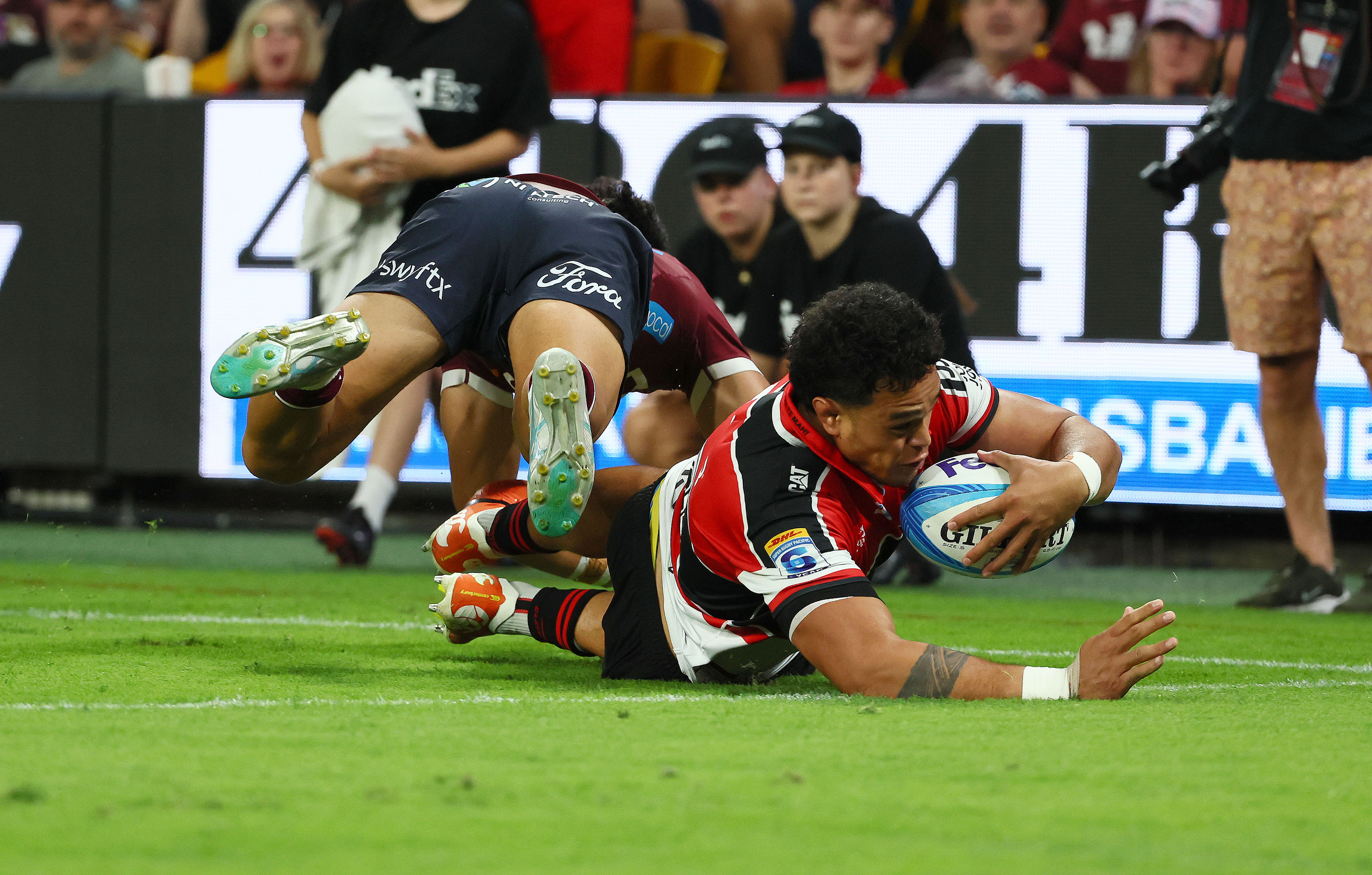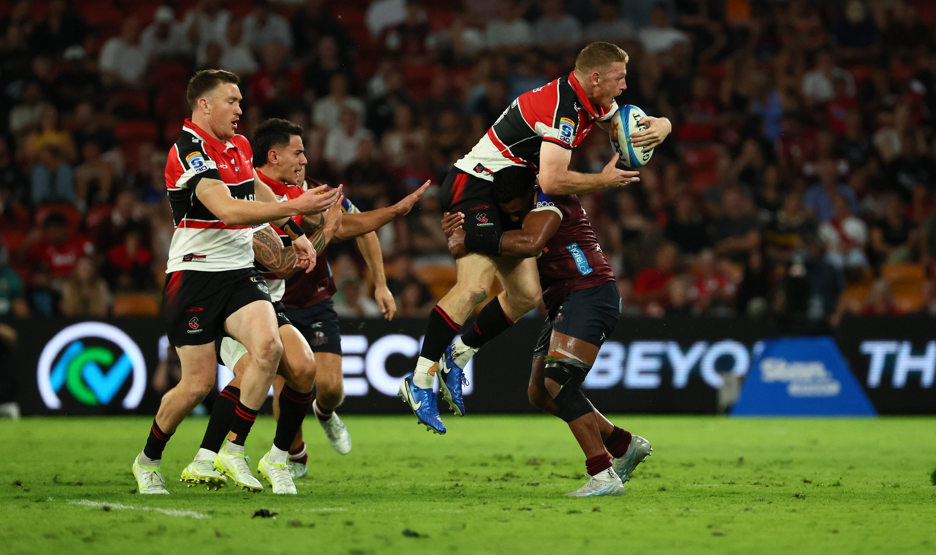 The Crusaders and the Reds went head-to-head under lights at Suncorp Stadium on Saturday night in a crucial Super Rugby Pacific clash, with just one place separating the sides on the competition ladder.