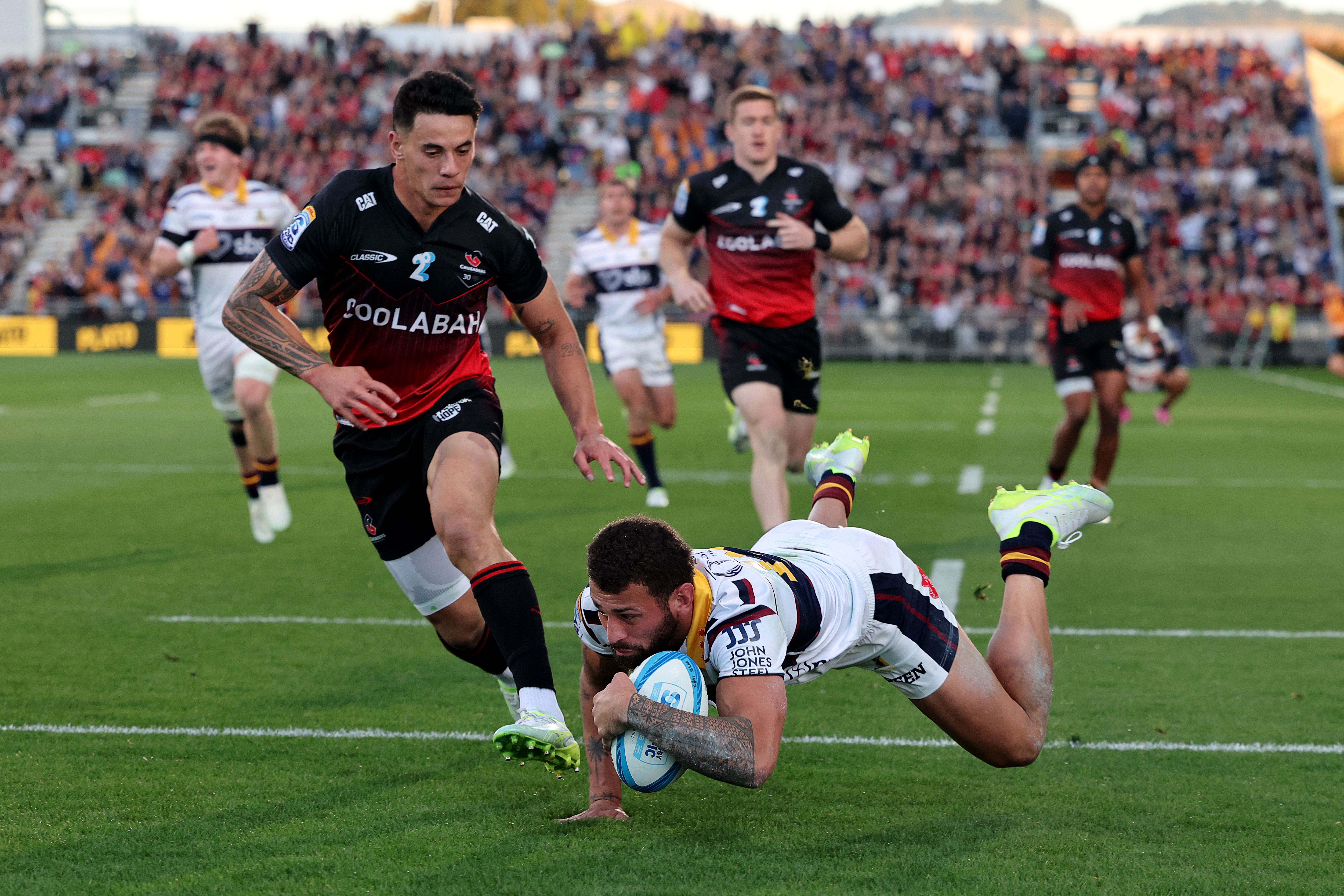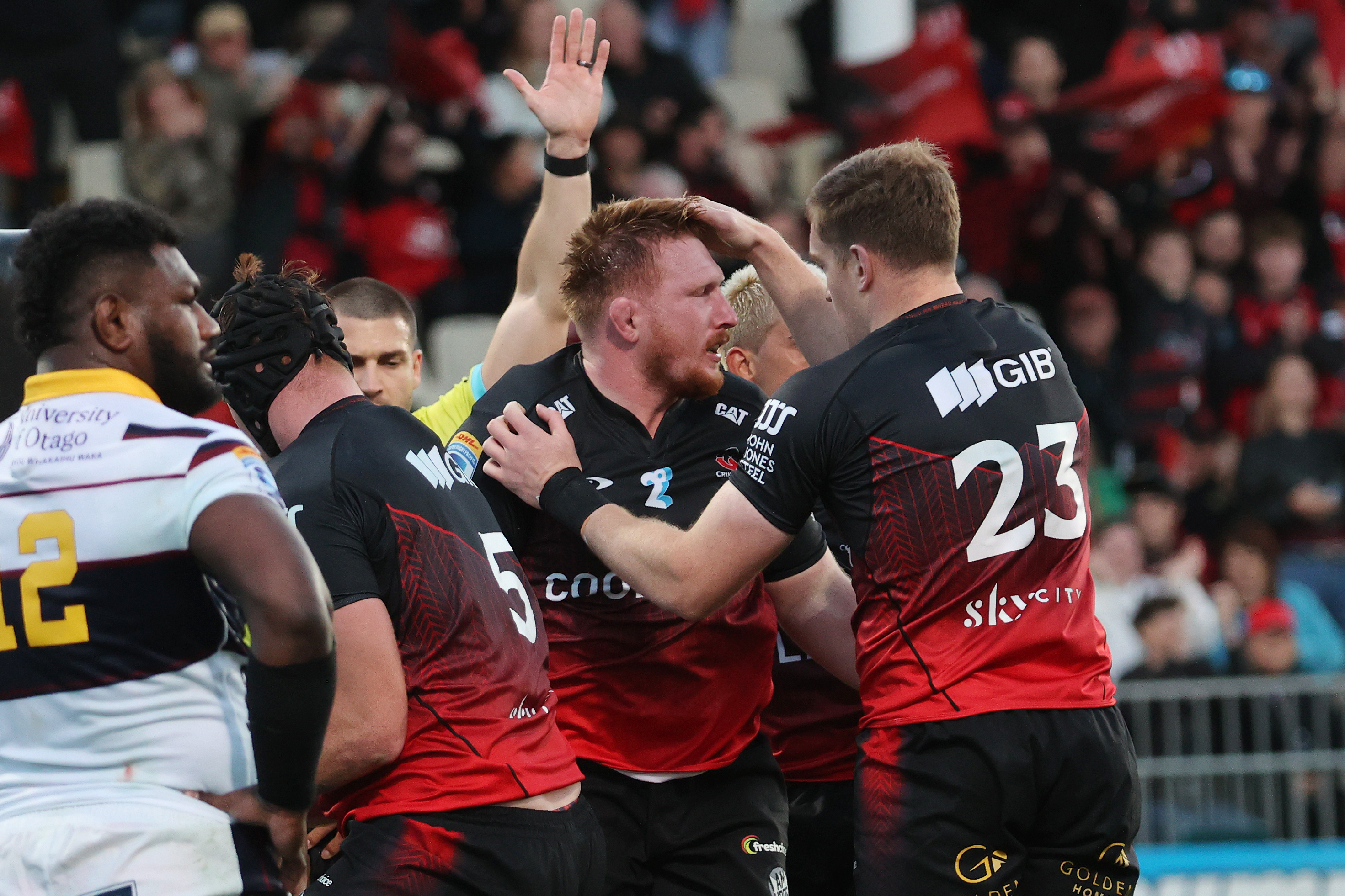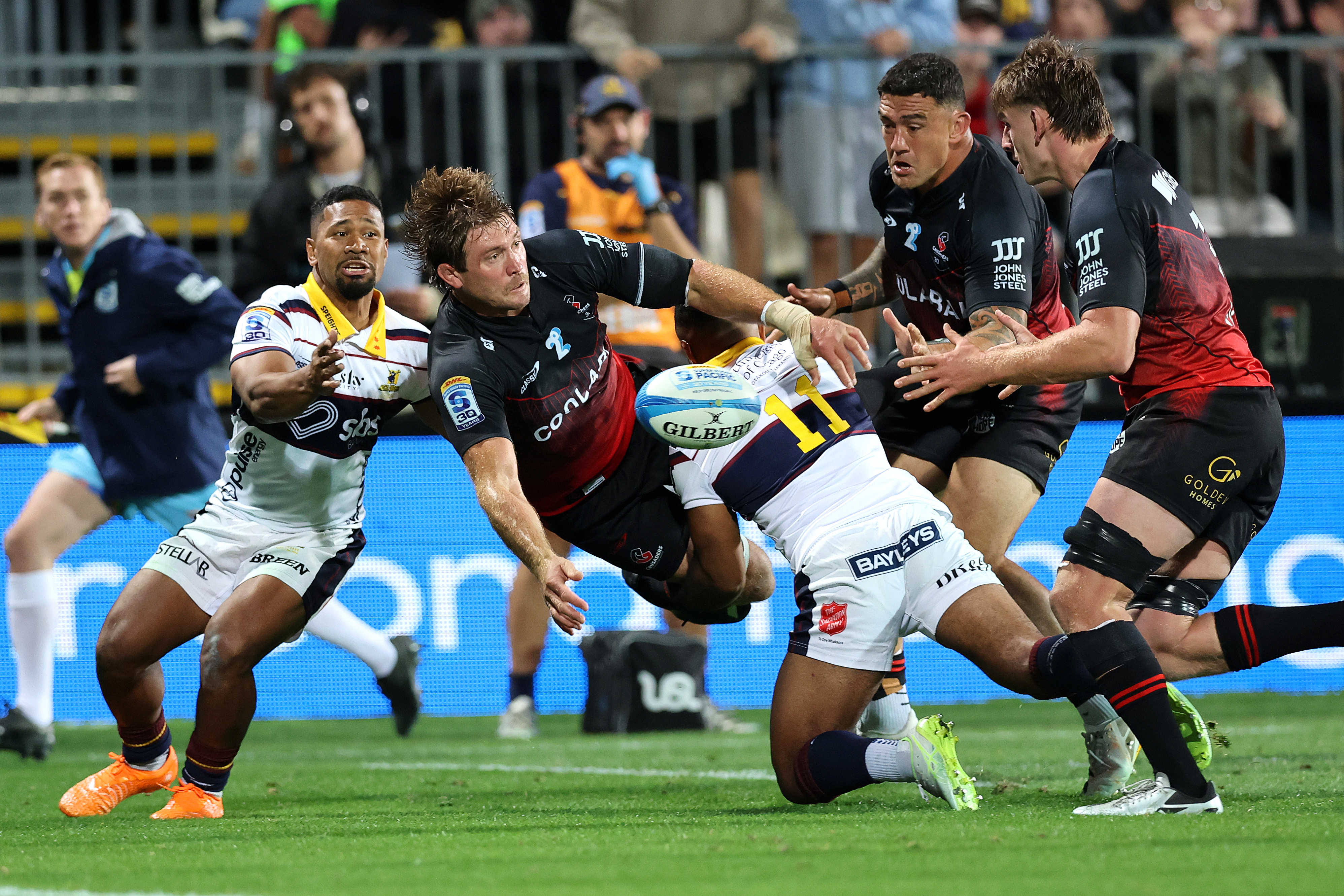 On 50 minutes, a well‑constructed lineout maul 15 metres out provided the platform. Taylor hit his target at the front, Johnny Lee peeled off and linked with Blackadder, then stayed alive on the inside line. Blackadder dragged in defenders and popped the ball back for Lee to dive over for his first Crusaders try, cutting the margin to a single point.