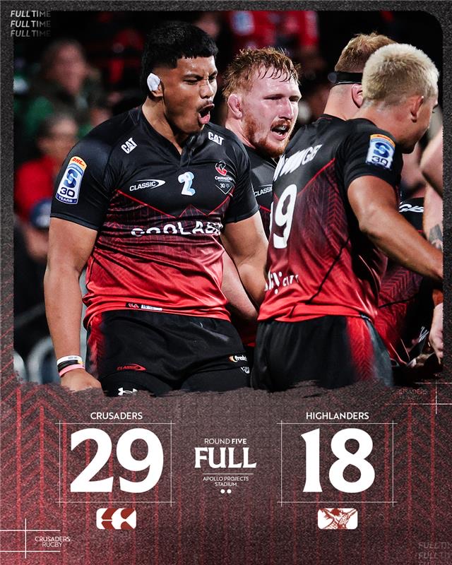 Full time in Christchurch: Crusaders 29, Highlanders 18.