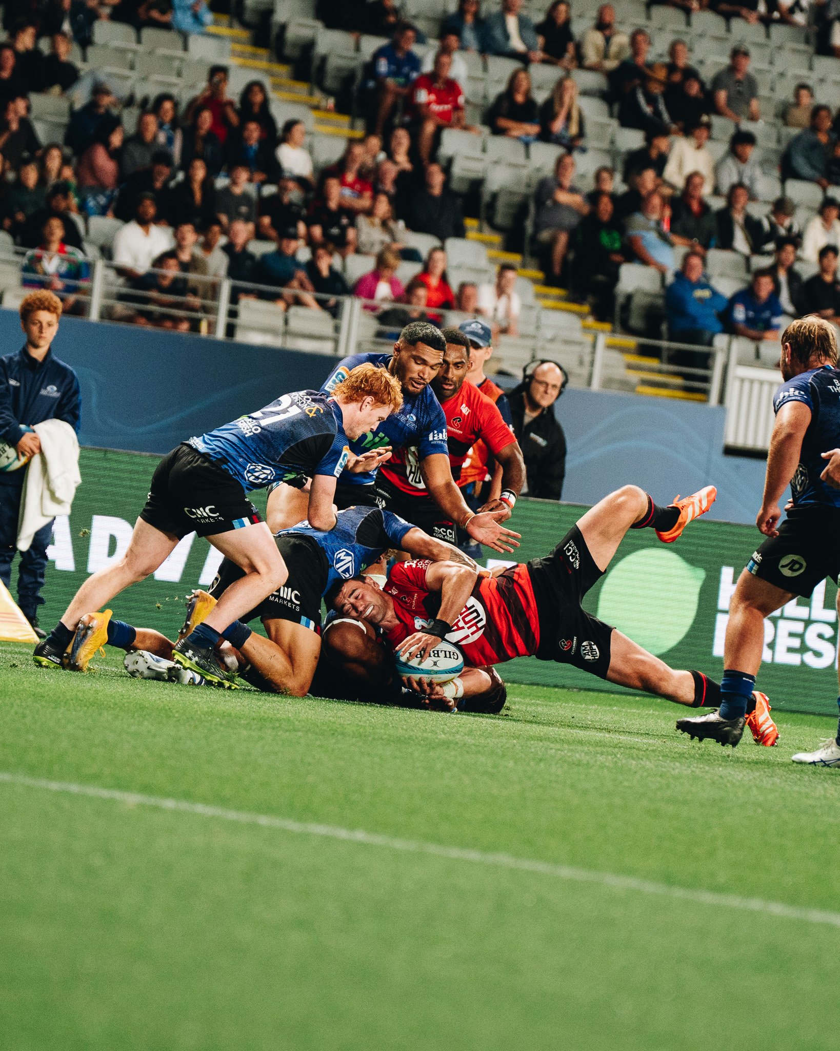 Hoskins Sotutu carried like a man possessed: 17 carries, 71 metres and four defenders beaten. For us, Chay Fihaki lit up the edges with two tries and five beaten defenders.