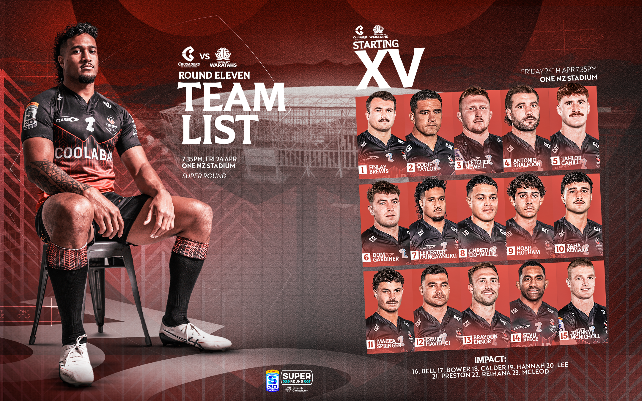 SUPER ROUND TEAM NAMING: Crusaders team named for first game at One New Zealand Stadium