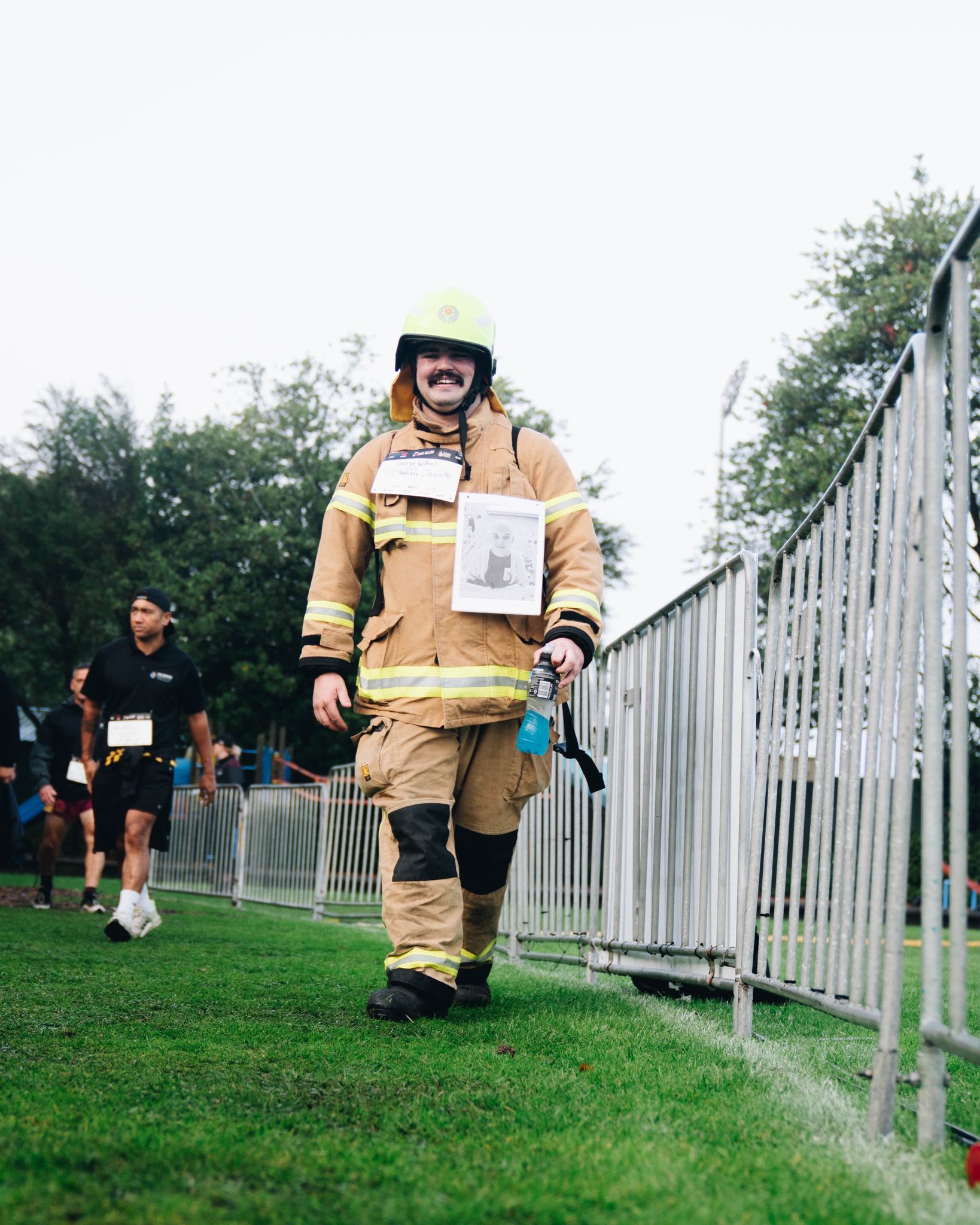 At just 25 years old, George has already spent 12 years firefighting, starting as a recruit when he was only 13. But this isn’t just another day on the job. George is walking 42 kilometres in his full firefighting kit – all 25kg of it, from his gumboots and jacket to helmet and cylinder.
